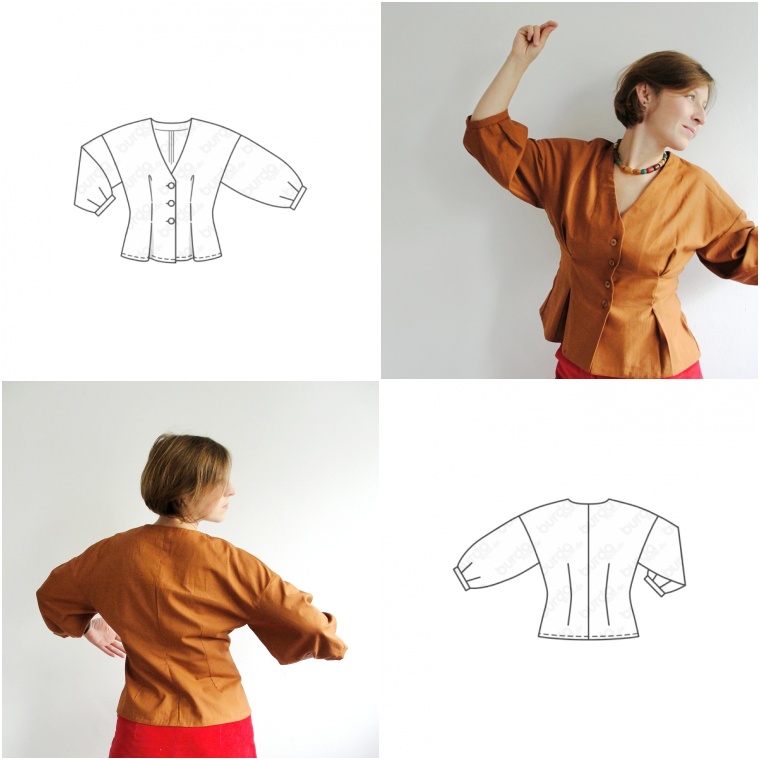 Majowy numer Burdy to mój tegoroczny faworyt. A wykrój 113 to była miłość od pierwszego wejrzenia. Może to ta piękna stylizacja z kapeluszem tak na mnie podziałała? A może coraz większa potrzeba uszycia czegoś innego i szalonego. Spójrzcie tylko na te piękne zaszewki. Jak te plecy są wymodelowane! A ten szpiczasty dekolt? Bluzka sztos! Z jednej strony mam świadomość, że ten model jest trochę przerysowany i człowiek wygląda w nim jak przebrany (czego, jak wiecie, nie znoszę). Z drugiej strony dramatyzm tej bluzki pozytywnie mnie nastraja i dodaje odwagi. Czy na was ubrania też tak czasem działają?